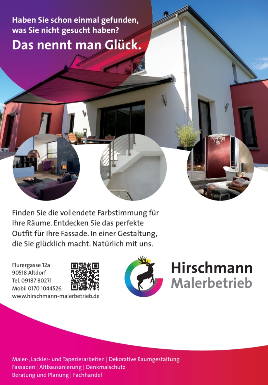 Ich habe den Malerbetrieb und Herrn Hirschmann 2011 als zuverlässigen und kompetenten Fachbetrieb kennengelernt und diese Erfahrung auch bei der Terminvereinbarung zum anstehenden Auftrag 2021 gemacht. Die Malerarbeiten wurden gestern perfekt und in angenehmer ruhiger und entspannter, gleichzeitig konzentrierter Atmosphäre ausgeführt. Herzlichen Dank an die beiden kompetenten Facharbeiter und an die Betriebsinhaberin für die Übernahme und Ausführung des Auftrags.