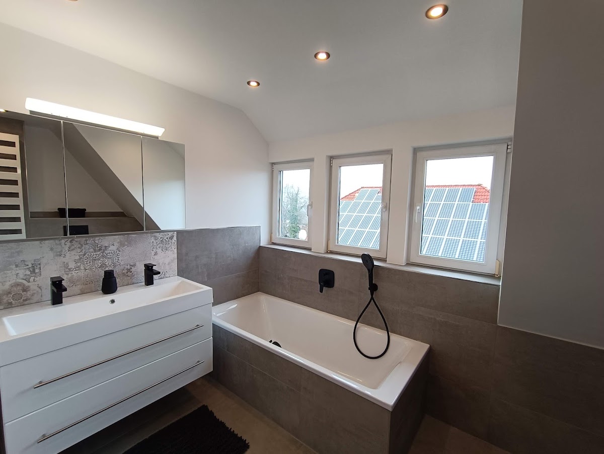 Wir haben den Plan gefasst, unser Badezimmer einmal komplett neu zu machen. Dabei wurde das Badezimmer, durch einen Wanddurchbruch, auf das Doppelte vergrößert. Viele kleine Arbeiten wollten wir vorab selbst erledigen. Dabei wurden wir von Sascha Schwarz mit Rat und Tat unterstützt, als sich herausstellte, dass die Wand doch tragend war, wurde eine schnelle und tolle Lösung mittels eines Stahlträgers als Sturz gefunden. Ab dem Zeitpunkt haben wir die Arbeiten komplett in die Hände der Mitarbeiter von Pfeiffer & Schwarz gegeben. Wir waren von der Pünktlichkeit, Genauigkeit und Schnelligkeit begeistert. Das Ergebnis ist genauso, wie wir es uns erträumt haben. Vielen Dank für die tolle und zuverlässige Arbeit.