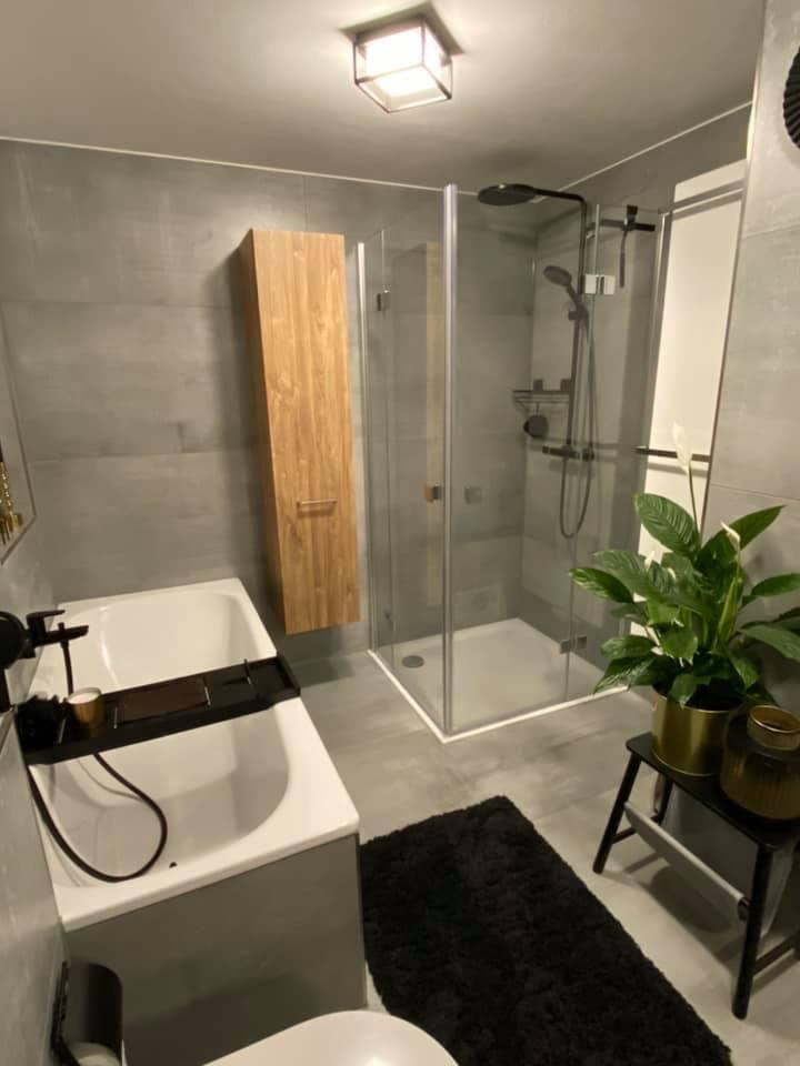 Wir haben den Plan gefasst, unser Badezimmer einmal komplett neu zu machen. Dabei wurde das Badezimmer, durch einen Wanddurchbruch, auf das Doppelte vergrößert. Viele kleine Arbeiten wollten wir vorab selbst erledigen. Dabei wurden wir von Sascha Schwarz mit Rat und Tat unterstützt, als sich herausstellte, dass die Wand doch tragend war, wurde eine schnelle und tolle Lösung mittels eines Stahlträgers als Sturz gefunden.