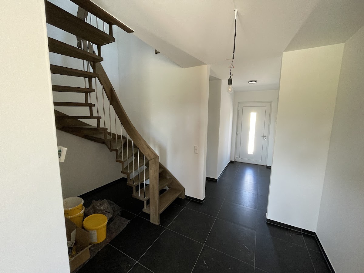 Herr Silva hat bei unserem neu gebauten Einfamilienhaus diverse Räume mit mehreren hundert Quadratmetern Wand+Decke mit Erfurt Malervlies tapeziert und gestrichen. Die Badezimmer wurden von Q2 auf Q4 gespachtelt, geschliffen und mit Silikatfarbe gestrichen. Einzelne Wände haben zusätzlich eine Marburg Mustertapete aus Vlies tapeziert bekommen. Besonders das Treppenhaus war mit bereits eingebauter Treppe und knapp 5m Höhe wirklich anspruchsvoll.