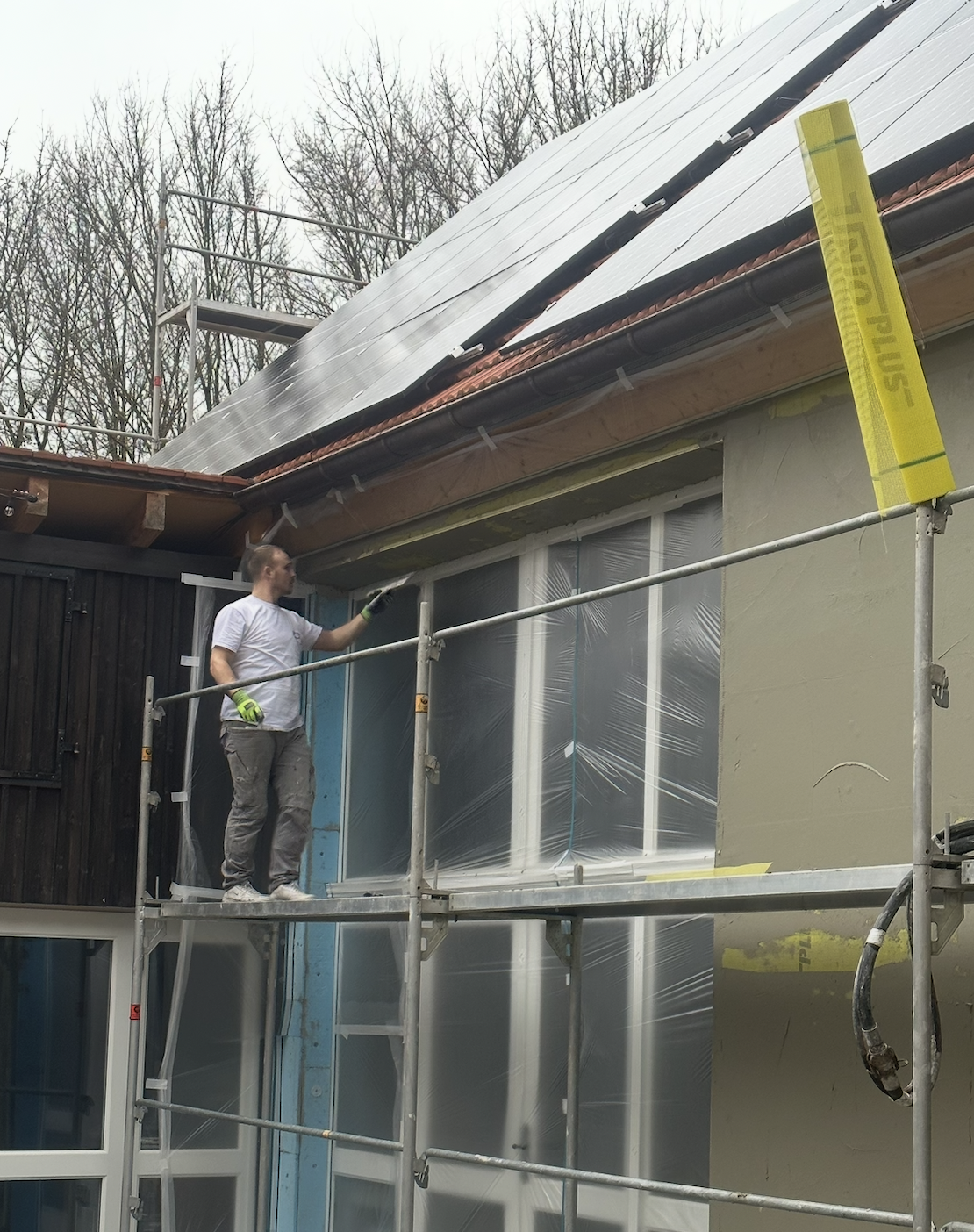 Habe ihn beauftragt, am Giebel meines Hauses, den Putz zu erneuern. Dabei sollte auch der Sockel und um die Fensterbänke alles abgedichtet werden.