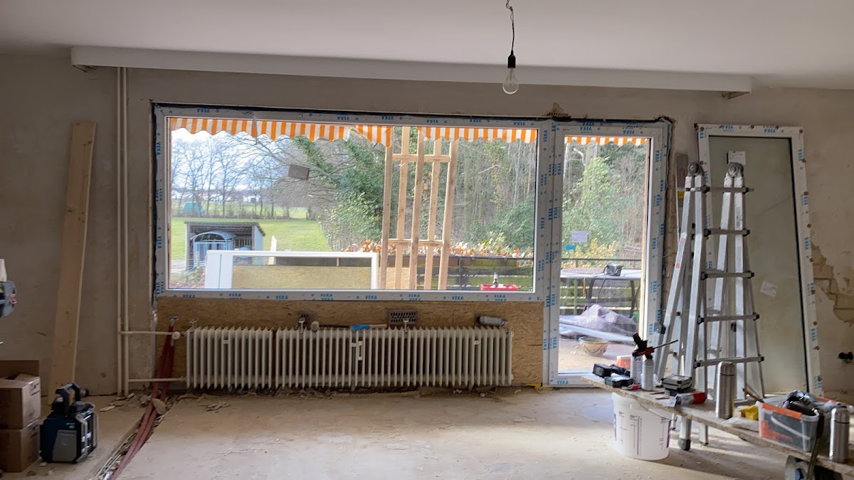 Eigentlich sollten nur 2 Bäder verspachtelt und gestrichen werden. Am Ende hat uns die Arbeit so gut gefallen, dass er fast das ganze Haus verputzt hat.
