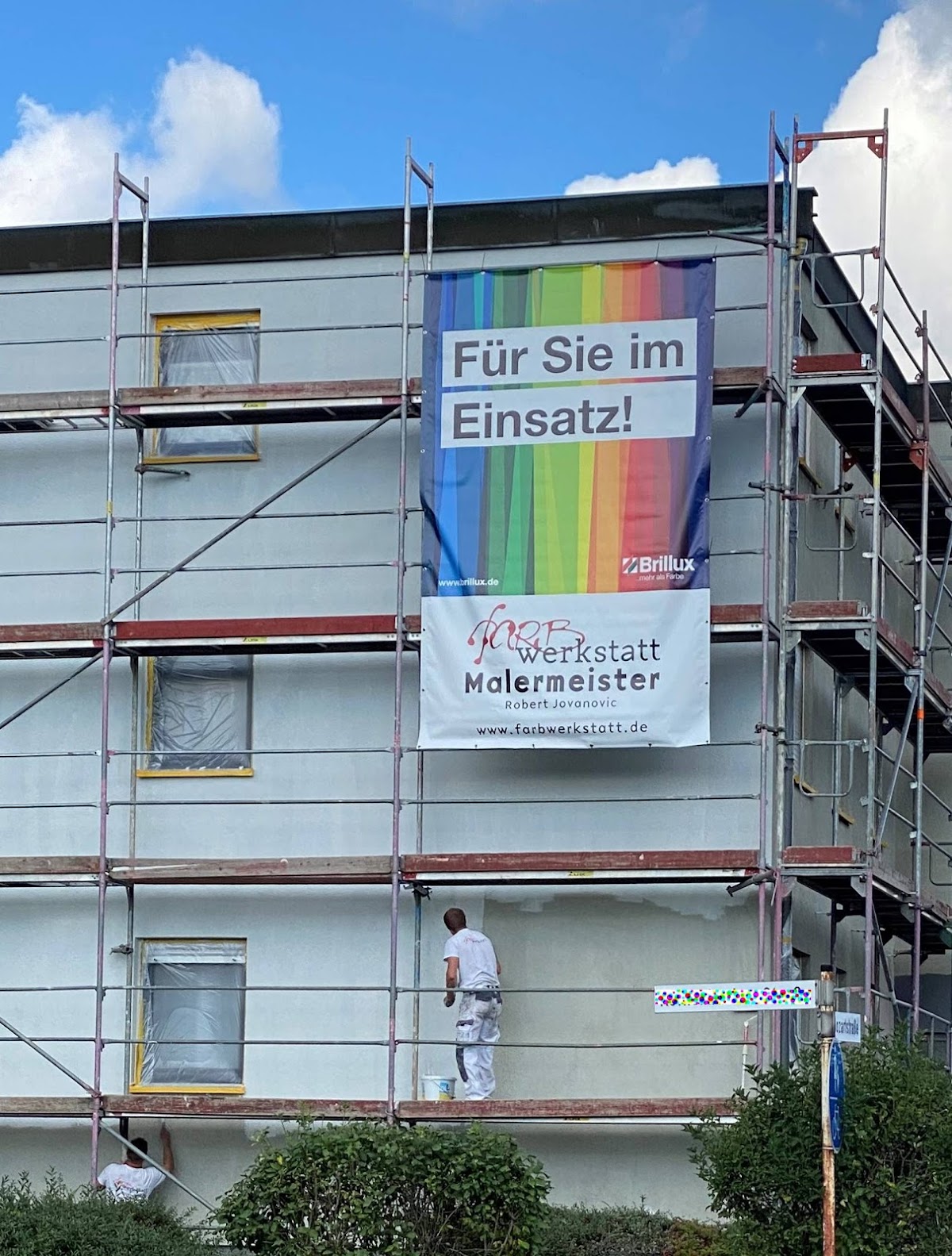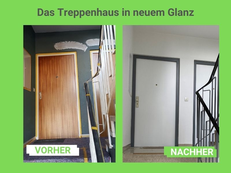 Bei uns wurde die Außenfassade gestrichen. Davor wurde die Fassade repariert und teilweise neu verputzt.