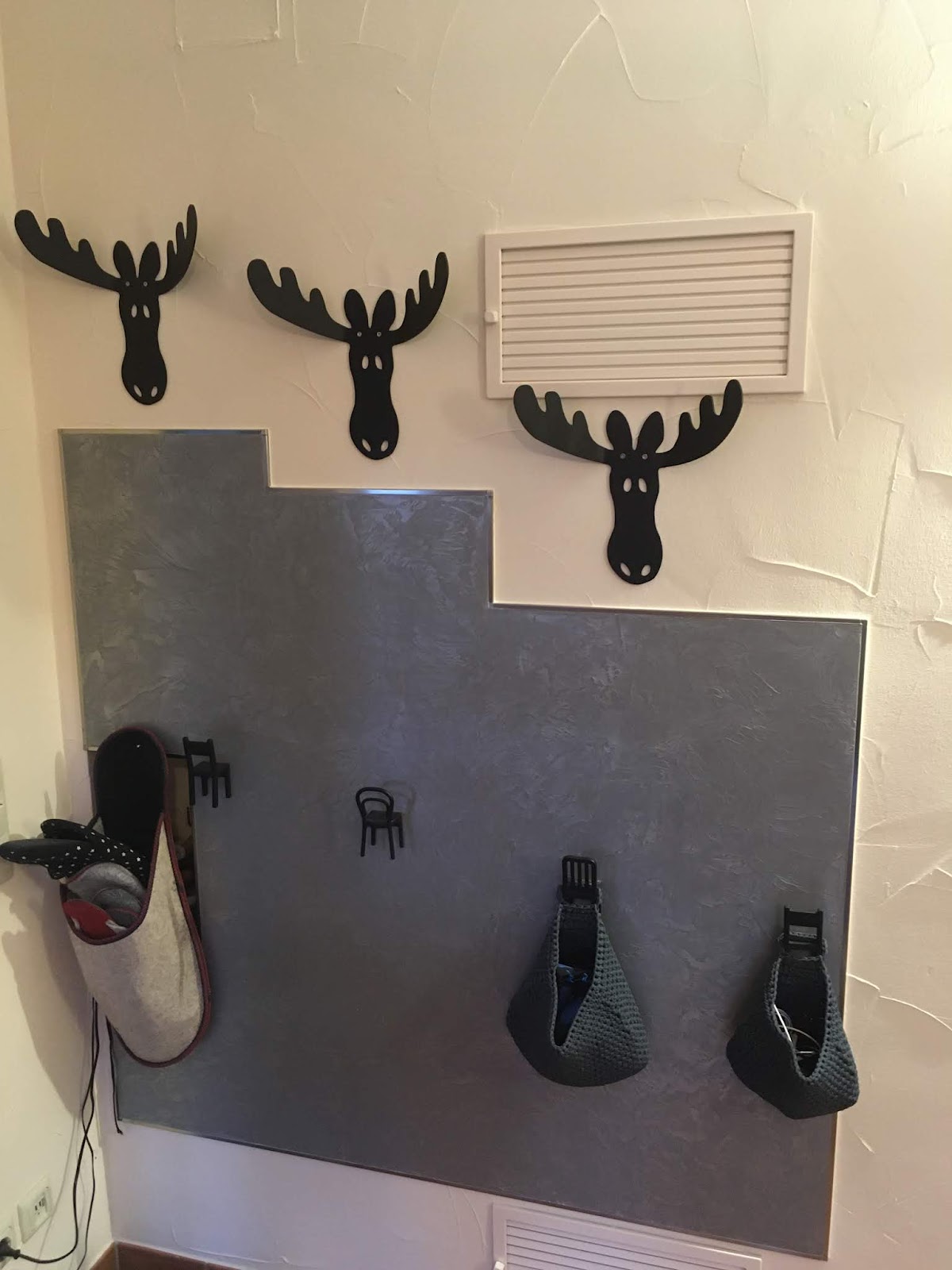 Im Korridor wurde dieselbe Technik für den Garderobenbereich angewendet.